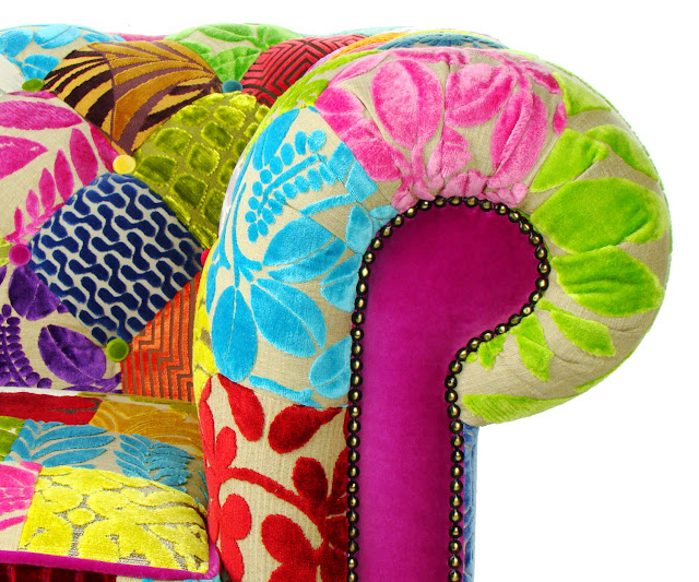 Collezione realizzata con la tecnica PATCHWORK, utilizzando rivestimenti di pregiato velluto inglese.